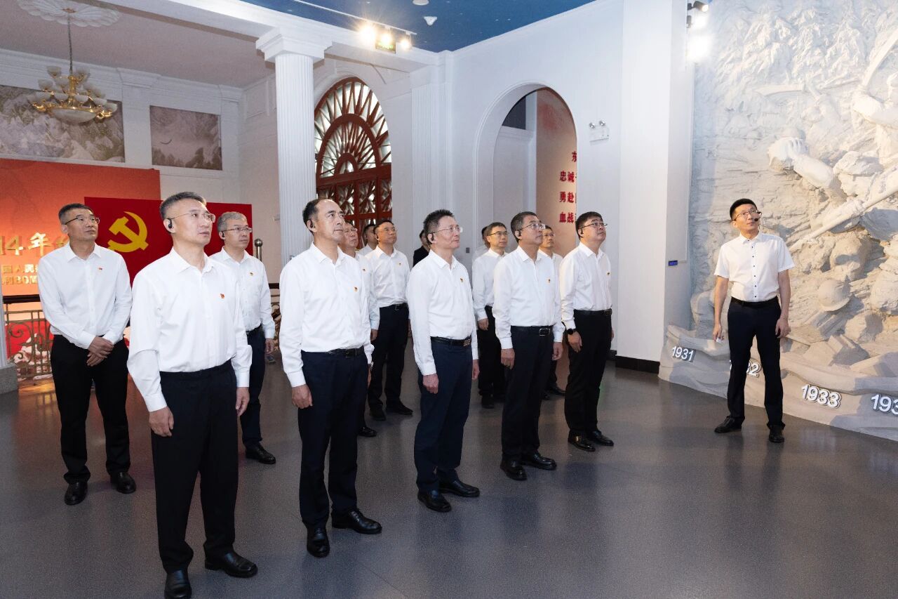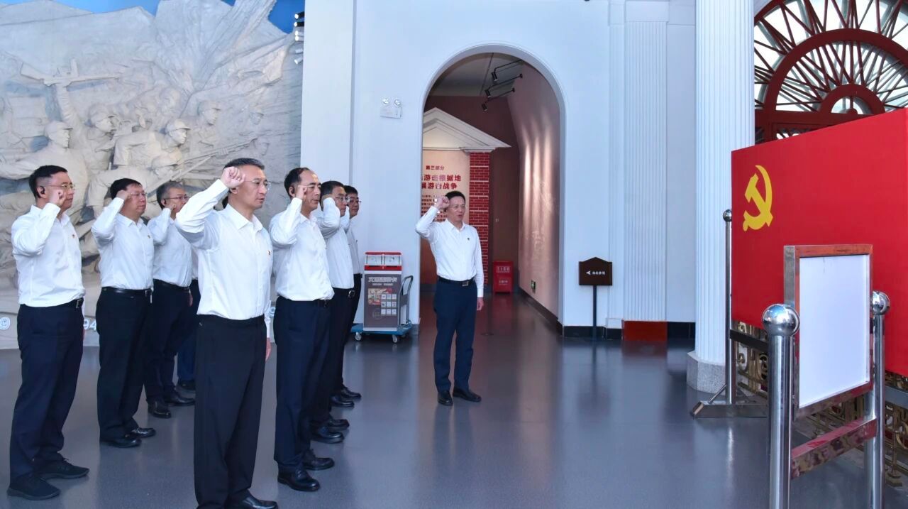 參觀最后,全體人員面向黨旗,莊嚴(yán)重溫入黨誓詞,在鏗鏘有力的入黨誓詞聲中,回溯入黨之初對(duì)黨和人民的莊嚴(yán)承諾,牢記初心使命。
