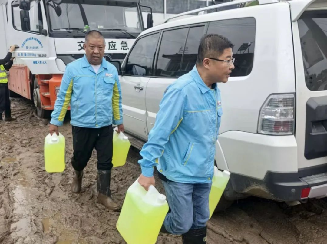 中國石油國家危險化學品應急救援蘭州石化隊緊急集結(jié)30名救援隊員和6輛搶險救援車,攜帶200套救援物資及液壓救援頂桿、生命探測儀、無人機等專業(yè)設備,向榆中災區(qū)緊急馳援。8月8日17時,蘭州分公司8名黨員組成“救援先鋒隊”,攜5噸油品及礦泉水、方便面等應急物資,馳援災區(qū)?!熬仍蠕h隊”克服重重阻礙,歷時7個小時后,將第一批油品成功送到了救援現(xiàn)場,并立即為搶險救援車輛、機械和發(fā)電機等設備加注燃油,爭分奪秒助力打通搶險救災生命線。