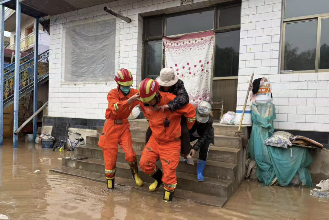 中國華能消防隊員轉(zhuǎn)移受災群眾