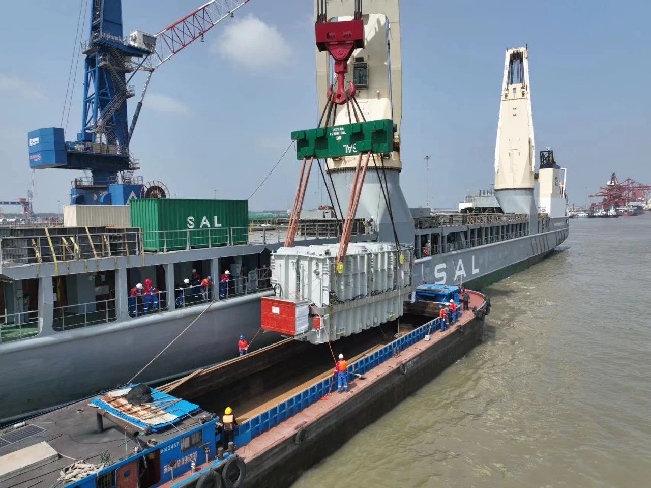 本次發(fā)運(yùn)的主變壓器本體運(yùn)輸重量為286噸,采用德國(guó)SAL公司旗下起吊能力達(dá)2000噸的重吊船進(jìn)行裝運(yùn)。設(shè)備發(fā)運(yùn)過程中,哈電國(guó)際物流管理團(tuán)隊(duì)根據(jù)設(shè)備出廠時(shí)間靈活選擇裝運(yùn)船舶、高效制作運(yùn)輸方案、精準(zhǔn)把控受載船期,高質(zhì)量完成了本次裝船作業(yè),成功邁出了主變壓器本體多式聯(lián)運(yùn)工作的第一步,為即將到來的總行駛里程近28000公里的洲際遠(yuǎn)洋運(yùn)輸、內(nèi)河內(nèi)海運(yùn)輸、跨國(guó)內(nèi)陸運(yùn)輸夯實(shí)了基礎(chǔ)。