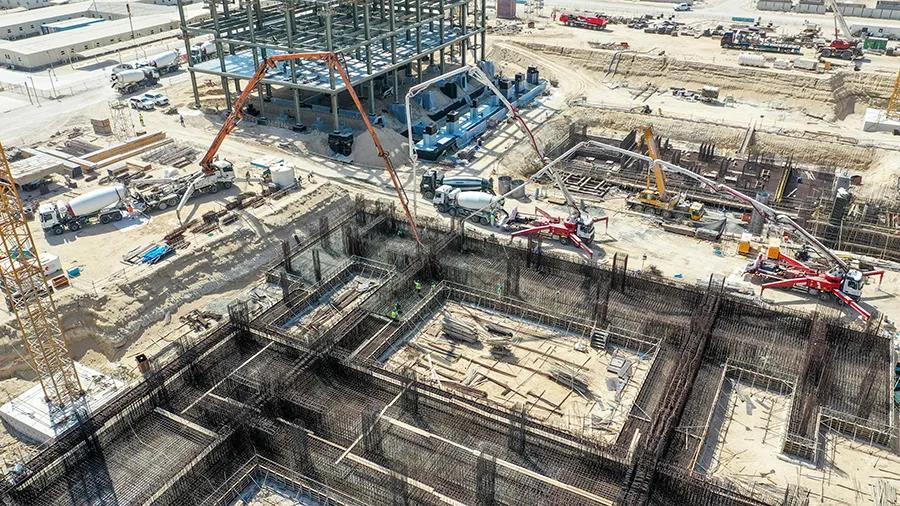 在國慶中秋"雙節(jié)"期間,哈電集團國際公司承建的迪拜哈斯彥4×600MW清潔燃煤電站項目4號機組迎來第一方基礎(chǔ)混凝土澆筑重大節(jié)點。哈斯彥項目4號鍋爐基礎(chǔ)1區(qū)底板澆筑工作歷時11小時連續(xù)作業(yè),共計澆筑1103方混凝土,于當?shù)貢r間10月2日19時5分順利完成,為后續(xù)哈斯彥項目4號鍋爐基礎(chǔ)施工及鍋爐鋼結(jié)構(gòu)吊裝工作奠定了堅實基礎(chǔ)。
