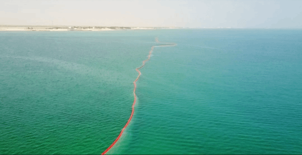 為了確保施工區(qū)周邊的珊瑚、水草群落不會(huì)受到疏浚海底絞吸作業(yè)和沉淀池排水所潛在的不利影響,為了保護(hù)這塊海洋動(dòng)植物的圣地,哈電集團(tuán)聯(lián)合國(guó)際知名咨詢公司的環(huán)境專家,經(jīng)過(guò)反復(fù)研究論證,確定了保護(hù)水質(zhì)的最佳方案——“防淤簾防污方案”,構(gòu)筑起橙紅色“防污染警戒線”。