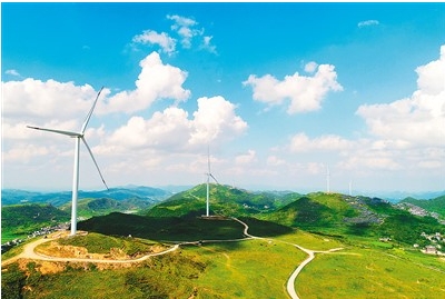 貴州省銅仁市憑借區(qū)位優(yōu)勢和豐富的風(fēng)能資源,加速風(fēng)電產(chǎn)業(yè)布局與發(fā)展。南方電網(wǎng)貴州銅仁供電局全力服務(wù)綠色清潔能源的高效并網(wǎng)和充分消納,助推地方實現(xiàn)低碳轉(zhuǎn)型目標(biāo)。圖為該市松桃苗族自治縣盤石鎮(zhèn)芭茅村山脊上,風(fēng)力發(fā)電設(shè)備隨風(fēng)轉(zhuǎn)動發(fā)電。向世杰攝(人民視覺)