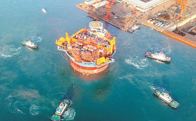 5月12日,由中國自主設計建造的亞洲首艘圓筒型“海上油氣加工廠”——“??惶枴睆闹袊S颓鄭u國際化高端裝備制造基地離港啟運,為中國首個深水油田二次開發(fā)項目年內(nèi)投產(chǎn)奠定基礎。