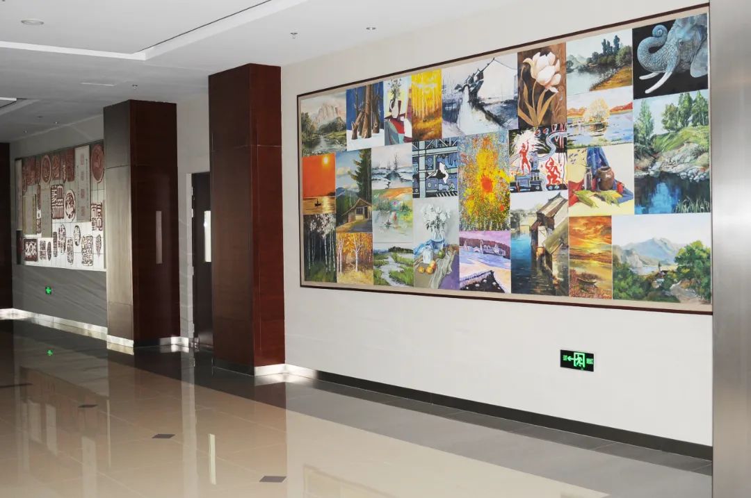 協(xié)會(huì)組織職工創(chuàng)作的油畫(huà)、印章等作品。