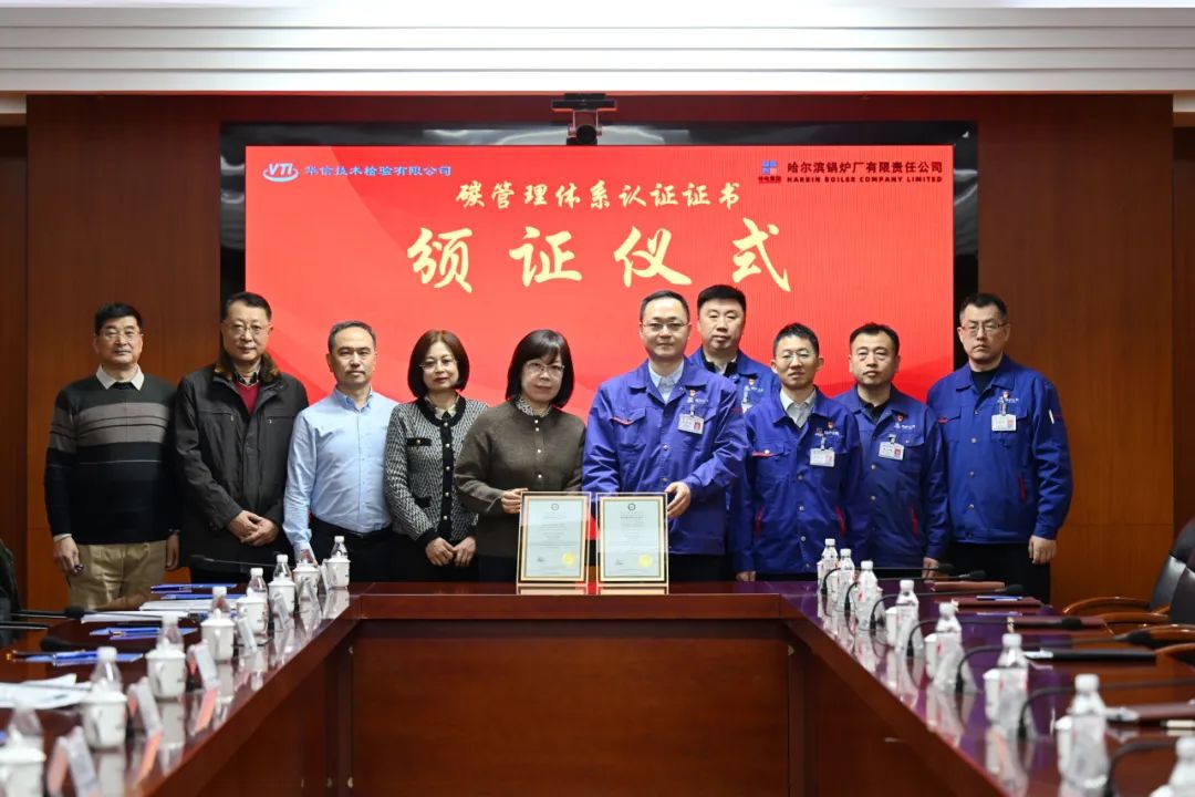 在此次頒發(fā)證書之前,華信公司對(duì)哈電鍋爐進(jìn)行了為期五天的審核,對(duì)公司及下屬分子公司各類產(chǎn)品生產(chǎn)制造所涉及的碳管理活動(dòng)進(jìn)行了資料查詢、數(shù)據(jù)核算和現(xiàn)場查看。最終,經(jīng)華信公司評(píng)審組評(píng)審,一致認(rèn)為哈電鍋爐各項(xiàng)指標(biāo)均符合碳管理體系標(biāo)準(zhǔn)要求。哈電鍋爐成功成為鍋爐行業(yè)內(nèi)首家通過碳管理體系認(rèn)證的企業(yè)。