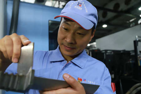 走在路上,他就是一位普通的中年人,誰(shuí)也不會(huì)想到他竟是黑龍江省首席技師!由黑龍江省人力資源和社會(huì)保障廳頒發(fā)的“李輝技能大師工作室”和“創(chuàng)新工作室”的標(biāo)牌,就在他的辦公室里閃著熠熠的光輝。多年來,作為技術(shù)帶頭人,李輝積極參與新型葉片研制、工藝編制改進(jìn)、工裝夾具設(shè)計(jì)改良、刀具切削試驗(yàn)等攻關(guān)任務(wù),獲百余項(xiàng)創(chuàng)新成果和十項(xiàng)發(fā)明專利、實(shí)用新型專利。他的工作室通過組織培訓(xùn)交流和學(xué)習(xí)、徒授藝、新產(chǎn)品研制和技術(shù)攻關(guān)、創(chuàng)新改進(jìn)、編寫加工手冊(cè)等活動(dòng),已經(jīng)培養(yǎng)出技師、高級(jí)技師70多名,占比一線技術(shù)工人24%。李輝用良心生產(chǎn)產(chǎn)品,用專心雕琢產(chǎn)品,用恒心提升產(chǎn)品,他用“工匠精神”激勵(lì)著更多的人不斷學(xué)習(xí)、進(jìn)步!