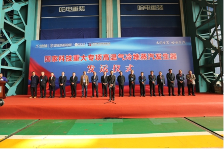 驗(yàn)收會(huì)后,哈電集團(tuán)黨委書(shū)記、董事長(zhǎng)斯?jié)煞蚺c中國(guó)華能黨組成員、副總經(jīng)理葉向東共同為“大國(guó)重器”揭幕,各方代表分別致辭,對(duì)國(guó)家科技重大專(zhuān)項(xiàng)全球首臺(tái)高溫氣冷堆蒸汽發(fā)生器研制成功并順利通過(guò)驗(yàn)收表示祝賀。